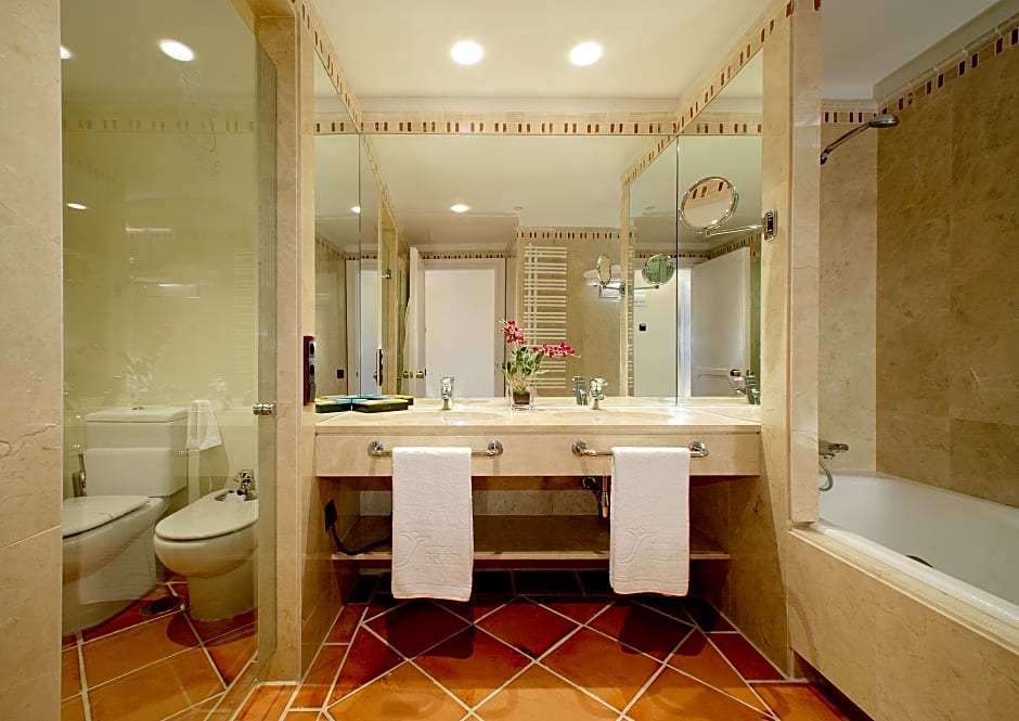 Includes a living area, bathrobe, fresh fruit and bottle of cava on arrival, and a terrace with views over Toledo.